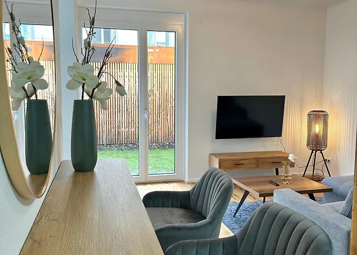 Apartament Moderne Erdgeschosswohnung Augsburg o powierzchni 46 m² z widokiem na ogród zapewnia Gościom dostęp do restauracji. Teatr lalek Augsburger Puppenkiste jest w około 2 km, a Muzeum Fuggera i dzielnica Fuggerei leży w odległości prawie 10 min jazdy od tego apartamentu.